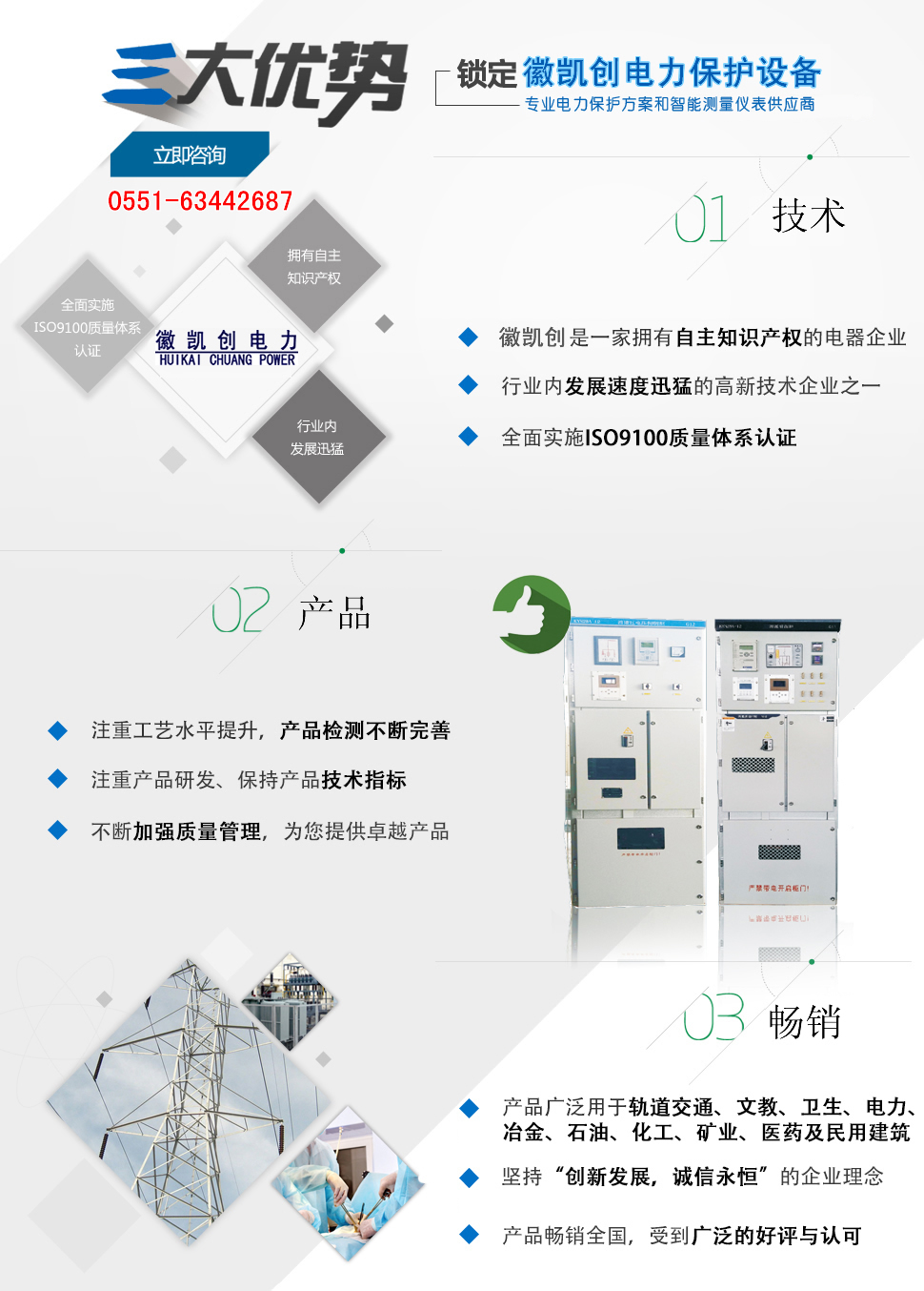 隨著國家電力事業(yè)的高速發(fā)展,安徽徽凱創(chuàng)電力保護設(shè)備有限公司始終堅持技術(shù)領(lǐng)先、提供個性化設(shè)計方案,為客戶量身定制卓越的產(chǎn)品。真誠與電力、電氣行業(yè)協(xié)作,共創(chuàng)美好未來。
